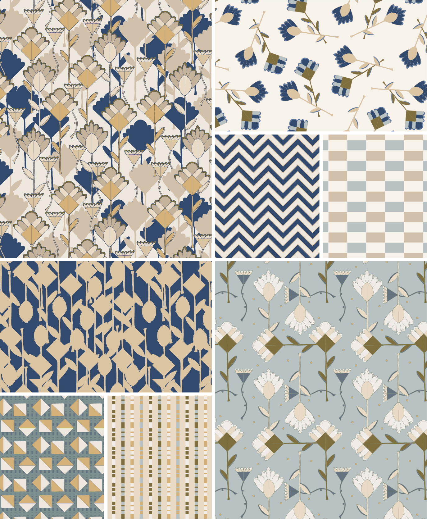 Geoflowers take root — born of imagination and geometry, spreading across a field. Sunlight casts their gentle shadows on the ground, forming a collage of movement and flow. At harvest, remnants of the forms have fallen, lying in their final resting place. Elsewhere, rows, zig zags and bands carry the field’s quiet cadence, echoing growth and arrangement through every design. Field of Flowers celebrates the joy of these imagined flowers, a reminder of warmth and the beauty of geometric shapes in their moment of splendour.