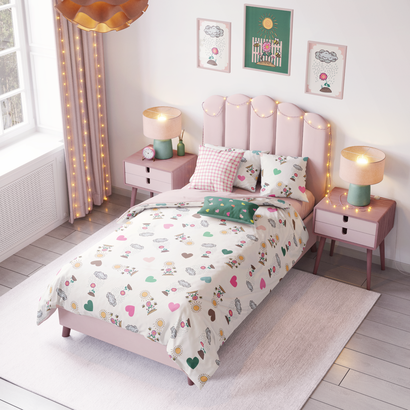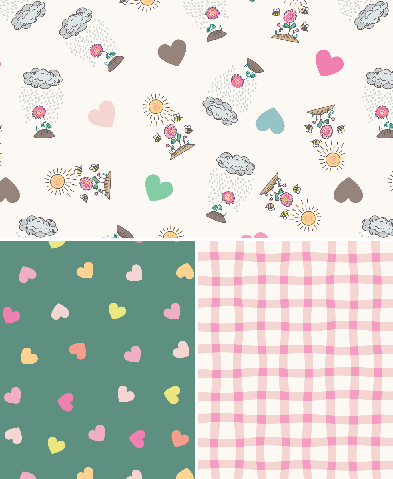 Sunshine and Raindrops loves a little rhyme - “Rain, rain, go away, come again another day...” Rain-drenched Petal longs for the sun, her petals heavy with droplets, while the world lingers with her, holding its breath. When the sunshine returns, joy spreads through her day, blooms brighten, and bees dance among scattered hearts. Pastel colours mingle, capturing imagination, warmth and whimsy across this mini collection.