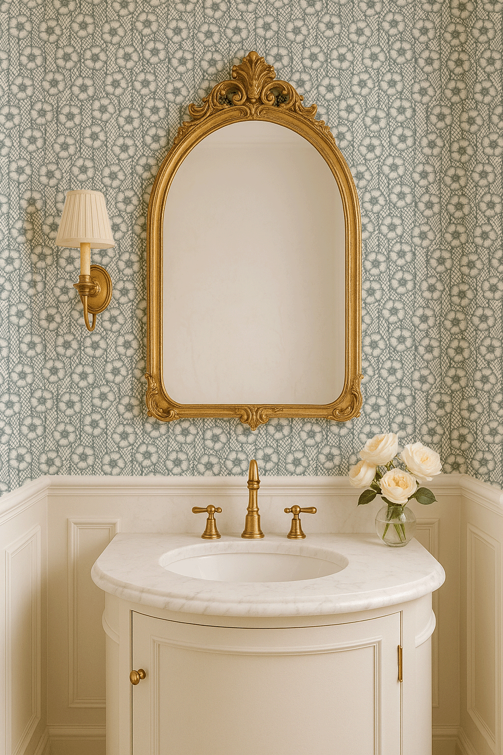 Soft flowers mingle with the lace’s subtle whisper, a gentle dance of elegance and grace. Every layer unfolds like a memory of vintage beauty.